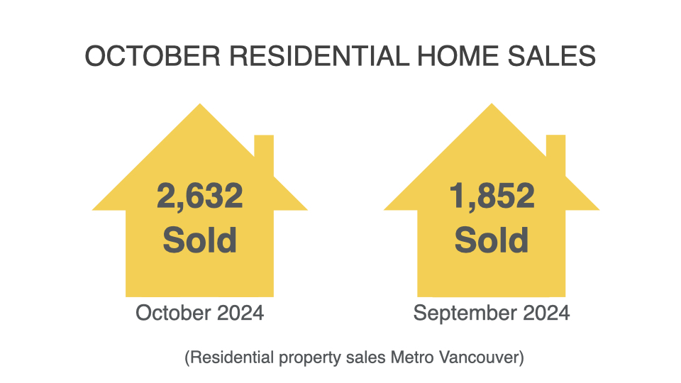 The Greater Vancouver REALTORS® (GVR) reports that residential sales registered on the Multiple Listing Service® (MLS®) in the region totalled 2,632 in October 2024, a 31.9 per cent increase from the 1,996 sales recorded in October 2023. This was 5.5 per cent below the 10-year seasonal average (2,784).